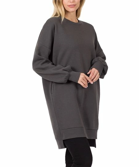 Rock cozy-chic style in this sweatshirt that features a hi-low hem and a solid hue. Its stretch-enhanced cotton blend promises flexible comfort all day long.