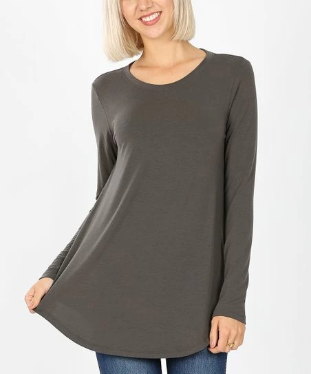 Freshen up your basics collection with this simply stylish long-sleeve top that features a round-hem design.