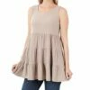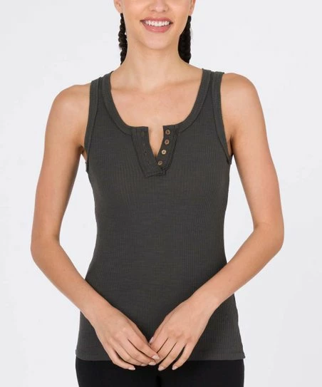 A scooped button neckline, rib knit and versatile solid hue make this tank a casual classic.