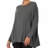 Upgrade looks for cooler temperatures wearing this neutral long-sleeve tunic featuring an empire-waist design and hi-low cut for a stylish touch.