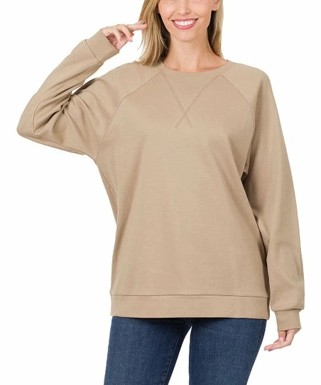 Stock up on cozy essentials for your cool-weather closet with this comfy cotton sweatshirt that features on-trend raglan sleeves.
