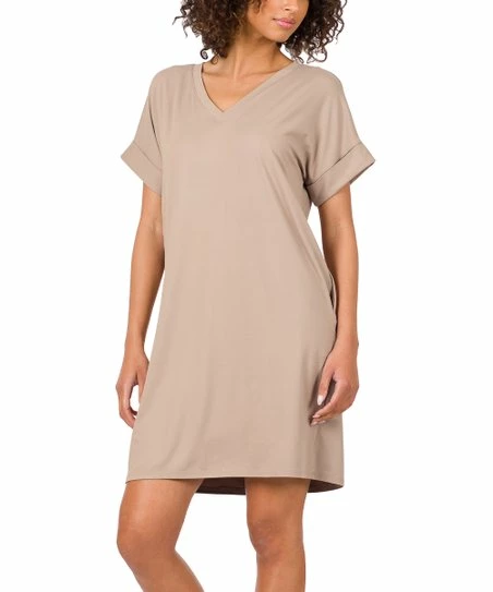 Rock breezy casual style in this dress that features a V-shaped neckline and short sleeves. Its stretch-enhanced blend promises flexible comfort all day long.