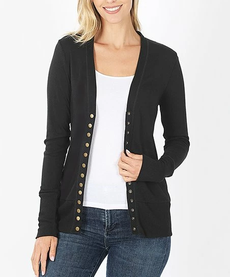 Made from soft, stretchy fabric and delicate brassy buttons, this versatile cardigan looks as stunning over a tank as it does over a dress.