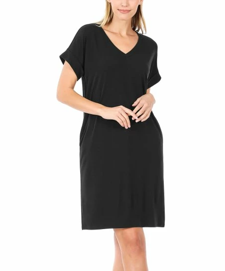 New ✨ Zenana Black V-Neck Pocket Shift πŸ‘— Dress – πŸ‘© Women πŸ˜‰