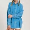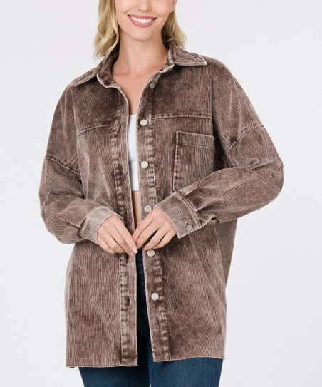 An all-cotton corduroy button-front shacket featuring an oversized fit and drop-shoulders for added comfort.