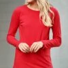 This tank has a scoop neck cut and solid tone to wear as a casual top or layered underneath.