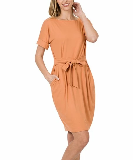 Slip on this ultra-soft shift dress featuring a tie waist to accentuate your figure and a solid hue for effortless accessorizing.