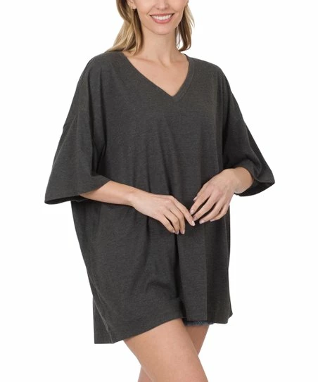 Best Pirce โœจ Zenana Charcoal Drop-Shoulder Longline Box V-Neck Tee – ๐Ÿ‘ฉ Women ๐ŸŽ‰
