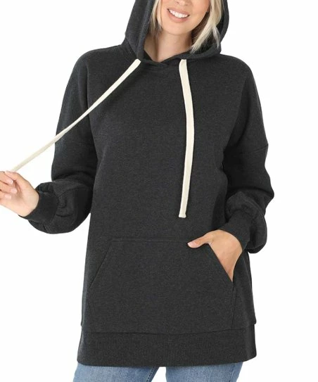 Power up your comfy favorites with the generous fit and soft cotton-blend feel of this longline hoodie made with a roomy kangaroo pocket for keeping your essential on-the-go items close at hand.