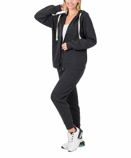 - Includes charcoal zip-up hoodie and charcoal joggers (two pieces total)