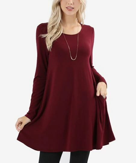 Pair your favorite statement necklace and jeans with this flowy swing tunic dress for an easygoing, casual look. Convenient side pockets provide ample space to keep your essentials close.