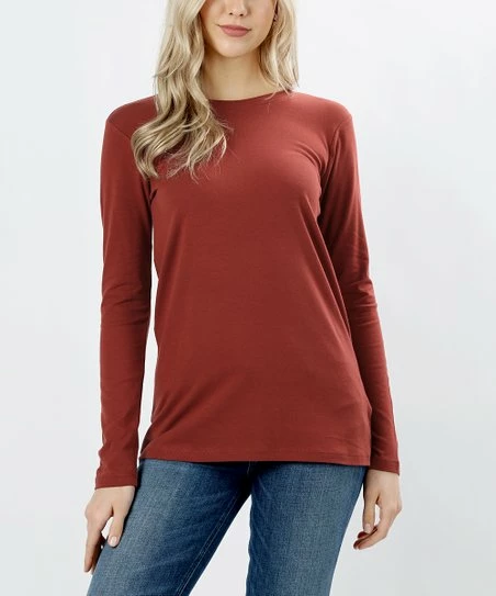Expand your wardrobe of everyday basics with this long-sleeved tee in a solid shade. A stretchy cotton blend brings comfort to your off-duty hours.
