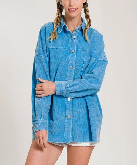 Go for a rugged look in this cotton corduroy shacket featuring a vintage-styled wash and classic button-up front.