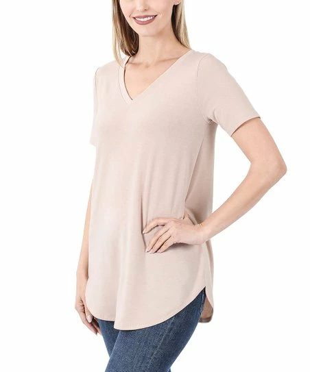 Buy πŸ’― Zenana Dusty Blush V-Neck Curved-Hem Tee – πŸ‘© Women βŒ›