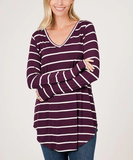 A hi-low hem updates this versatile v-neck top with a trend-right touch, while stretch-blend fabric ensures a just-right fit.