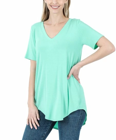 Hot Sale βŒ› Zenana Green Mint Curved-Hem V-Neck Tee – πŸ‘© Women πŸ”₯