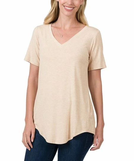 Fill out your go-to top collection when you bring this versatile tee that flaunts stretch-infused fabric finished with a flattering V-neckline.