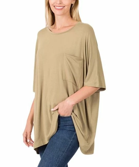 Discount πŸ₯° Zenana Khaki Oversize Round-Neck Pocket Tee – Plus 🌟