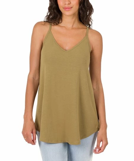 A staple style in your warm-weather wardrobe, this v-neck swing tank features a reversible design and stretchy tri-blend fabric for comfortably versatile wear.