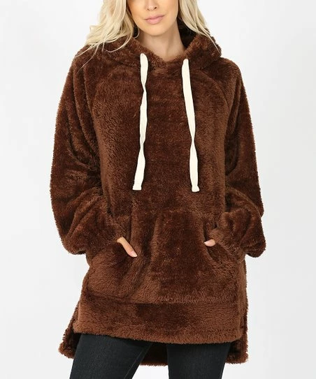 Cozy up inside this hi-low hoodie to stay warm and comfy during cool weather thanks to its plush, fuzzy fabric.