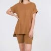 Whether you’re working out or hanging out, this set has you covered with its stretch-enhanced microfiber hi-low tee and matching bike shorts.