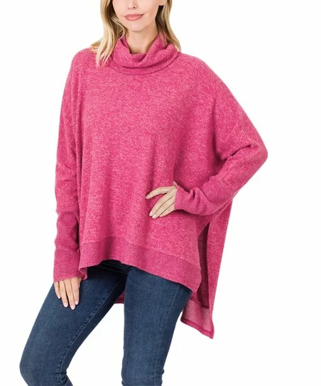 When temperatures drop, this cowl neck sweater keeps you feeling cozy with an oversize design and hi-low hemline.