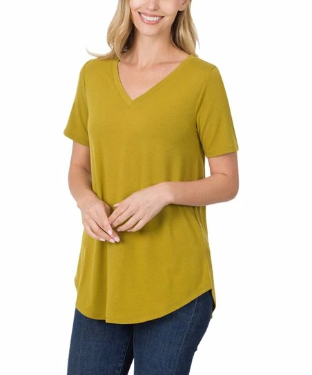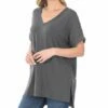 Versatile tunic with a v-neckline and relaxed silhouette. Stretch-enhanced fabric for a comfortable fit.