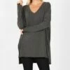 Flowy oversized tee featuring a chest pocket and solid hue.