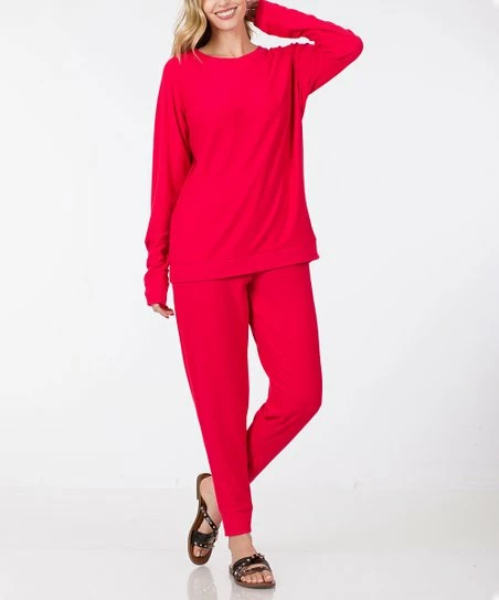 - Includes one ruby long-sleeve top and one pair of ruby joggers (two pieces total)
