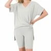 Longline crewneck top with slit sides in a solid hue and matching leggings.
